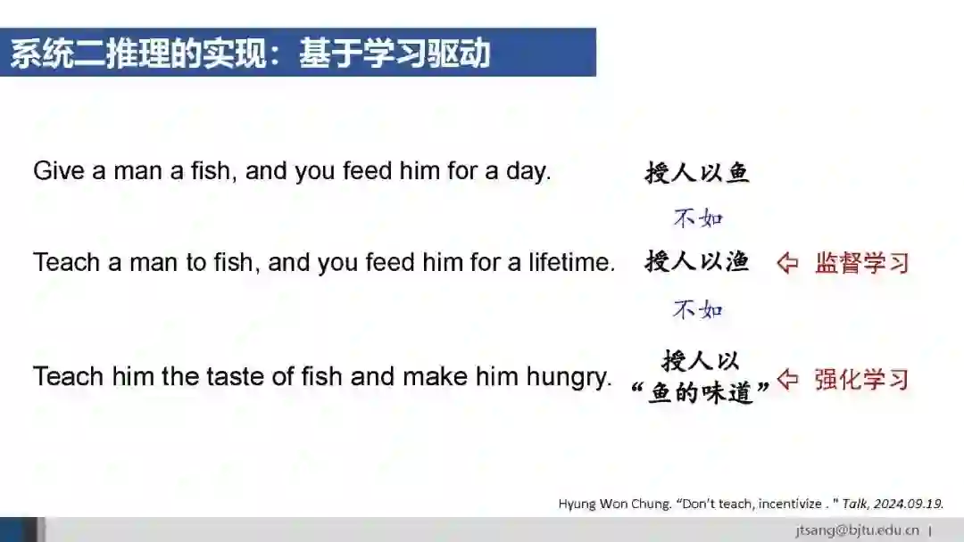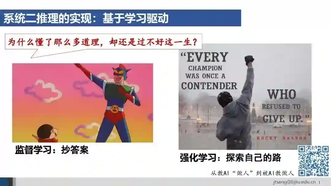 以上是从老师的角度,监督学习是“教”,强化学习是“育”。 从学生的角度,监督学习是“学”,强化学习是“习”。别人标注的推理路径不一定适合你,在试错中探索适合自己的路径才是王道。