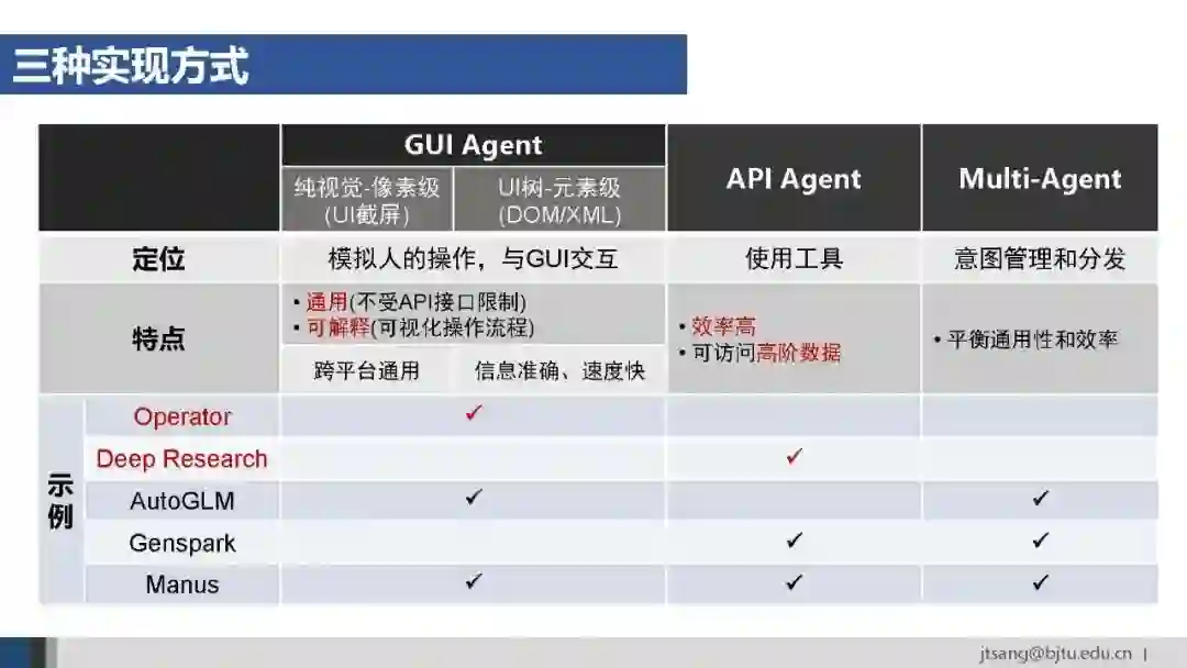 实现方式上包括GUI Agent、API Agent和多Agent三种。 其中多Agent,比如荣耀的OS Agent “YoYo”调用中移动的App Agent“灵犀”,目前看是使用大型App、兼顾通用性和效率的可选方案。