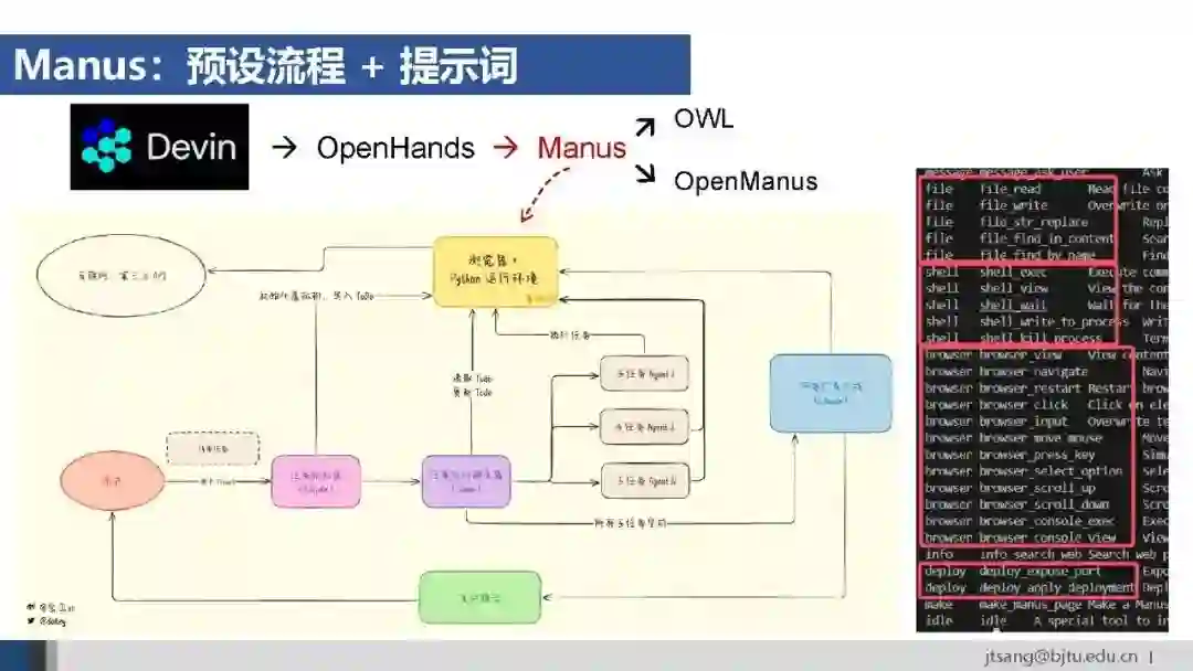 Manus结合使用了预设流程和提示词的方法:预设的任务解决流程是问题分析-任务规划-调用子任务Agent-结果总结等,在每个子任务Agent内部则设计了针对性的提示词。