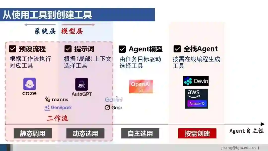 随着自主性进一步提高,工具也将由agent通过在线编程按需创建。一些全栈开发的agent,比如Devin、亚马逊的Kiro都在实现类似的功能。