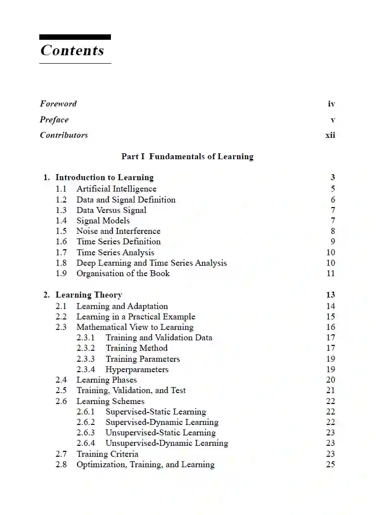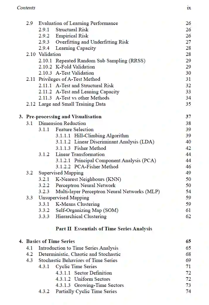 这本书专注于一般学习过程,尤其是深度学习的深层概念,更多地关注传统方法和现代时间序列分析的基本要素。尽管图像处理被认为是深度学习的重要主题,但作者们决定将此主题从本书中排除,将其分配给未来的单独出版物。得出这个结论的主要理由是为了避免过多的多样性和失去核心关注。本书从基本定义和推测平稳过渡到方法构建。书的内容以一种能够培养和巩固时间序列分析基本要素的方式进行了教学组织。这种表示方式旨在扩大读者从科学到工程方面的视野。书中也考虑引出了一些深度学习方法在时间序列分析中的实际示例,随着生物医学工程和医学信息学应用的兴起。同时,本书以数学的方式表示深度学习方法,以帮助研究者和开发者以数学方式构建他们自己的方法。显然,新方法的数学表示相比描述性表示有更好的可读性。可以看出,新学生更倾向于使用块状图和描述性方法来学习深度学习的概念。沉迷于这种学习方式可能会使他们在数学表示的基本能力上产生误导,这可能对学习深度学习方法起到退化的作用。此外,在许多情况下都没有看到一致的图形表示。这本书也介绍了人工智能中的一些新想法。引入了A-Test验证方法,并与其他传统方法进行了比较。读者可以轻松找到这种方法在提供与其他两种替代方案相比更为现实的验证中的详细阐述。在学习模型方面,周期性时间序列和周期性学习是本书提出的另外两个新概念,也引入了一些学习方法,如时间增长神经网络,用于学习周期性时间序列。本书未涉及时间序列分析的生成模型。这些模型很适合纳入预测类别,这被视为未来工作的一部分。