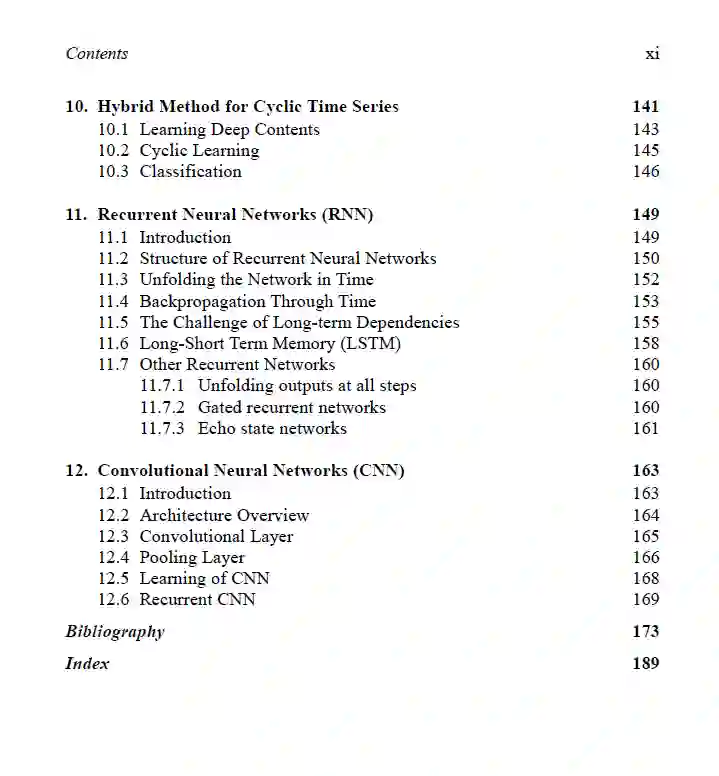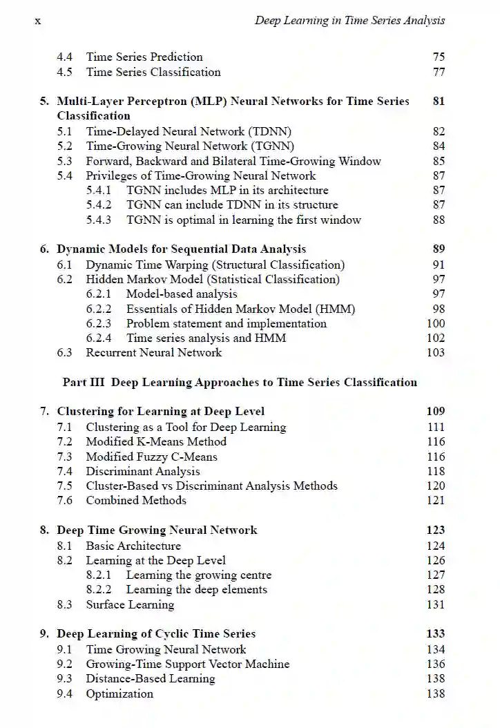 深度学习是人工智能的重要组成部分,特别是在图像分类等应用中,各种神经网络架构(例如,卷积神经网络)已经产生了可靠的结果。这本书介绍了用于时间序列分析的深度学习,特别是对于周期性时间序列。它详细阐述了在其架构深层次进行时间序列分析所采用的方法。周期性时间序列通常具有可以用于更好的分类性能的特殊特征。本书对此进行了讨论。处理周期性时间序列也在本书中有所覆盖。分类随机时间序列的一个重要因素是与分类方法架构相关的结构风险。本书解决并构建了结构风险,以及为分类方法定义的学习能力。这些公式和数学推导将帮助研究者理解方法,并以客观的数学方式表达他们的方法。本书设计成为具有不同机器学习背景和理解水平的读者(包括学生,工程师,研究者和这个领域的科学家)的自学教材。书中提供的大量信息丰富的插图将引导读者对时间序列分析的深度学习方法有深入的理解。