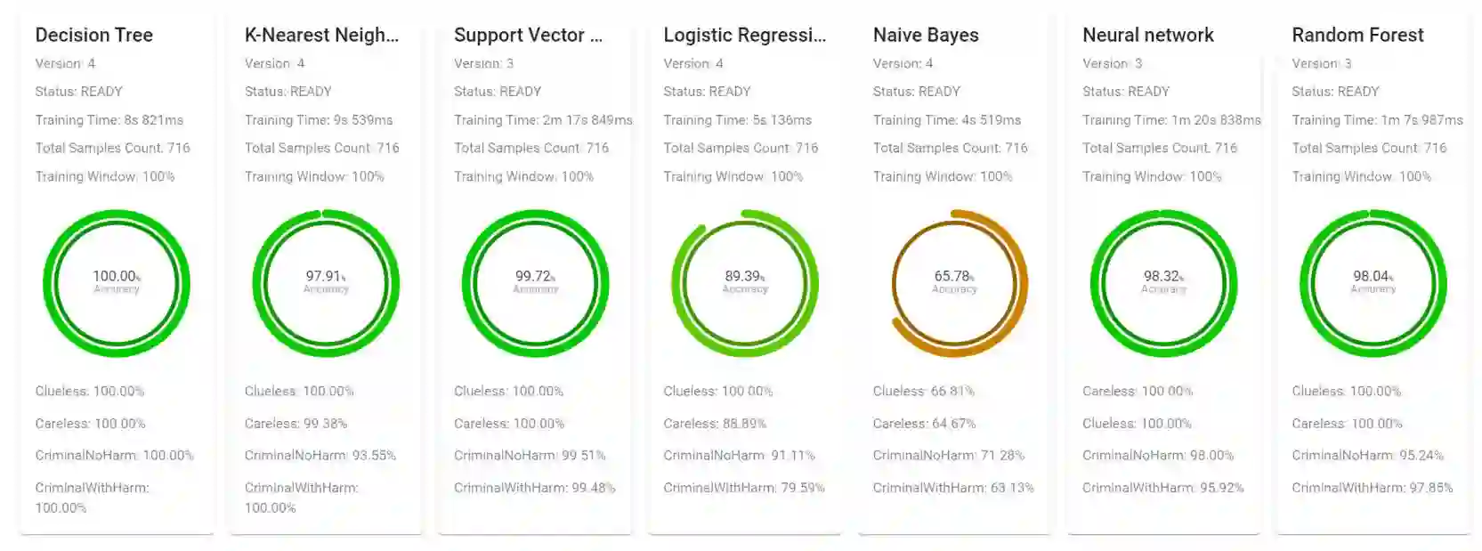 图 3:认知阴影模型对四种可能类别的威胁检测结果。