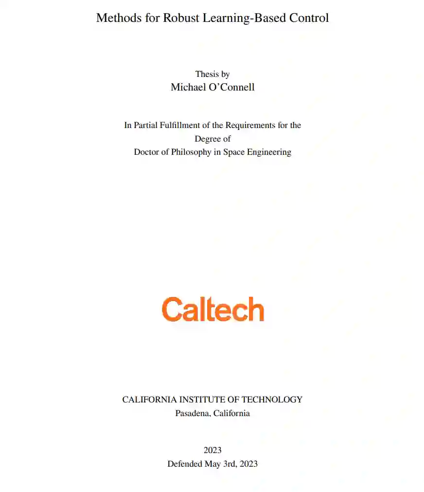 无人机(UAV)的使用近年来迅速增长,应用范围从休闲消费者相机无人机到自治商业递送和运输,甚至高科技隐形飞机。这些应用中的每一个都提出了一套独特的挑战,但所有这些应用都需要精确控制飞行器以实现期望的性能。例如,无人机递送需要可靠地将货物运送到住宅和商业区域,而且要在各种天气条件下进行;基于无人机的急救和搜索救援任务要求安全地穿越偏远的野外环境、路边事故和密集的城市环境;而城市空中交通则要求飞行汽车紧密跟随计划路径以避免在所谓的城市峡谷中与其他车辆发生碰撞,这些峡谷给车辆导航和控制带来了许多挑战。 UAV应用的多样性共享一个共同要求:在操作过程中绝对的安全性和可靠性,这在它们的设计、操作和控制中产生了许多挑战。我们将专注于UAV控制的几个具体挑战。例如,系统必须能够在广泛的条件下运行,如高风速,这在复杂的城市环境中进一步复杂化,后者可能产生湍流气流。系统还必须能够在故障存在的情况下运行,如执行器的故障,不仅必须迅速检测并补偿以防止完全失控,还必须解决以允许安全着陆。最后,任何控制系统都必须集成到可验证的架构中;这通常导致控制器的层次结构,使每层都可以独立验证,但导致计算开销和控制环路中的延迟。在这篇论文中,我们将通过安全、鲁棒和敏捷的基于学习的控制方法来解决这些挑战。
