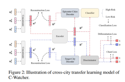 新型冠状病毒病(COVID-19)已经打破了人们的日常生活,并仍在全球肆虐。现有的非药物干预解决方案通常需要及时、准确地选择城市居民区的一个子集进行遏制甚至隔离,其中确诊病例的空间分布被视为子集选择的一个关键标准。尽管此类遏制措施成功地阻止或减缓了一些国家的COVID-19传播,但也有人批评其效率低下或无效,因为确诊病例的统计数据通常具有时延性和粗粒度性。为了解决这些问题,我们提出了C-Watcher,这是一个新颖的数据驱动框架,旨在筛查目标城市的每一个社区,并在新冠肺炎疫情从疫情中心蔓延到城市之前预测感染风险。在设计方面,C-Watcher从百度地图中收集大范围的长期人类移动数据,然后利用一套基于城市移动模式的特征来刻画城市中的每个居民区。此外,为了在局部爆发前将第一手信息(在震中传递)传递到目标城市,我们采用了一种新的对抗编码器框架,从与流动性相关的特征中学习“城市不变”的表示,以便精确早期检测目标城市的高风险社区,甚至在任何确诊病例已知之前。我们在新冠肺炎疫情爆发早期利用实时数据记录开展了大量的C-Watcher实验,结果证明了C-Watcher在大量城市早期发现高危社区的有效性和有效性。