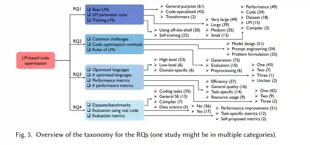 最常被提到的挑战是性能和代码相关的问题,例如一步优化的限制(18项研究)、平衡正确性和效率(15项研究)以及代码语法的复杂性(10项研究)。
