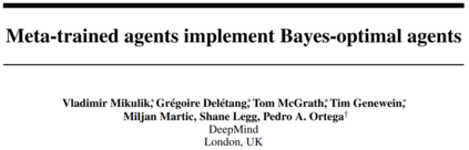 元学习代理的行为类似贝叶斯最优agent(第4.1节)。也就是说,元学习agent做出的预测和行动实际上与贝叶斯最优agent无法区分。
