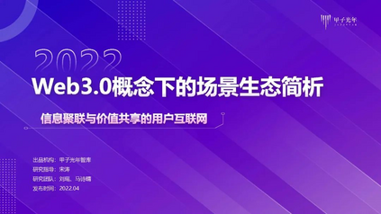 当前全球互联网发展正处于从Web2.0向Web3.0时代的过渡阶段。甲子智库认为,Web3.0作为下一代互联网形式,将具有颠覆当下主流互联网商业模式的重要意义。基于此,甲子智库重磅推出《Web3.0概念下的场景生态简析——信息聚联与价值共享的用户互联网》。