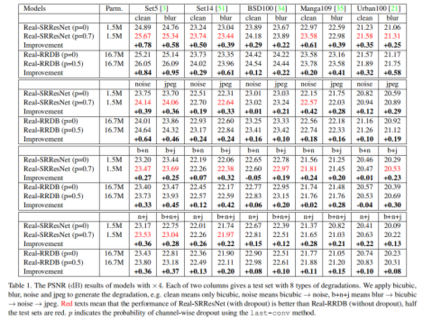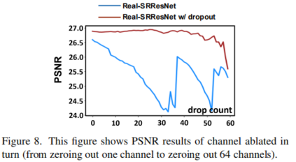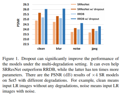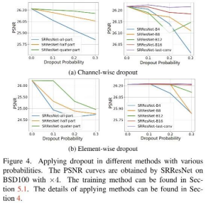 在分类、跟踪、检测等高等级计算机视觉任务中,Dropout操作被广泛用于降低模型在训练集上过拟合的风险,但这一操作在图像超分辨等底层视觉任务中仍未得到充分的探索。作为一种经典的回归问题,图像超分辨任务不仅值域连续,其性能也与Dropout的利用息息相关。本文的核心思想是Dropout同样可以适用于底层计算机视觉任务,只是对于dropout的加入方式需要进行细微的调整,合理的应用dropout能够带来网络性能的提升。因此,本文作者进行了细致的实验与分析,证实合理使用dropout有益于超分模型性能提升,并改善其泛化性能 。