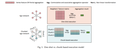图神经网络(GNN)是处理图建模问题的强大工具,已被广泛应用于各种应用中,包括社交网络(如社交垃圾邮件检测[87,112],社会网络分析[91]),生物信息学(如蛋白质界面预测[35],疾病-基因关联[83]),药物发现[11,66],流量预测[61],医疗保健[2,21],推荐[32,49,55,111],自然语言处理[134,145]和其他[26,85,133,141,144]。通过将图结构信息融入到深度学习模型中,GNNs可以取得明显优于传统机器学习和数据挖掘方法的效果。GNN模型通常包含多图卷积层,其中每个顶点聚合其邻居的最新状态,更新顶点的状态,并对更新的顶点状态应用神经网络(即转换)。以传统的图卷积网络(GCN)为例,在每一层中,顶点使用求和函数聚合相邻的状态和自己的状态,然后应用单层MLP转换新状态。如果层数为𝐿,这样的过程重复𝐿次。在𝐿th层中生成的顶点状态供下游任务使用,如节点分类、链接预测等。近年来,许多研究工作在图神经网络模型的设计方面取得了显著进展。著名的模型包括GCN[108]、GraphSAGE[46]、GAT[95]、GIN[118]和许多其他特定于应用程序的GNN模型[128,130]。到目前为止,已有数十篇综述综述了GNN模型[114,116,135,147]。另一方面,为了高效地开发不同的GNN模型,基于各种深度学习库提出了许多面向GNN的框架[8,14,34,44,68,104]。许多新的优化被提出来加速GNN训练,包括GNN计算内核[19,38,52,53,81,93,129],高效的编程模型[51,113,117],以及充分利用新硬件[18,42,124,148]。然而,这些框架和优化主要集中在单个机器上训练GNN,而没有过多关注输入图的可扩展性。