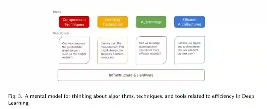 在本节中,我们将介绍mental模型来思考与高效深度学习相关的算法、技术和工具的集合。我们提出在五个主要领域构建它们,前四个集中在建模上,最后一个围绕基础设施和工具。