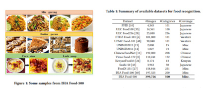 食品与人类的行为、健康和文化等密切相关。来自社交网络、移动网络和物联网等泛在网络产生的食品大数据及人工智能尤其是深度学习技术的快速发展催生了新的交叉研究领域食品计算[Min2019-ACM CSUR]。作为食品计算的核心任务之一,食品图像识别同时是计算机视觉领域中细粒度视觉识别的重要分支,因而具有重要的理论研究意义,并在智慧健康、食品智能装备、智慧餐饮、智能零售及智能家居等方面有着广泛的应用前景。本文在项目组前期食品识别(Food Recognition:[Jiang2020-IEEE TIP][Min2019-ACMMM])的研究基础上,提出了一个新的食品数据集ISIA Food-500。该数据集包含500个类别,大约40万张图像,在类别量和图片数据量方面都超过了现有的基准数据集。在此基础上我们提出了一个新的网络SGLANet联合学习食品图像的全局和局部视觉特征以进行食品识别,在ISIA Food-500和现有的基准数据集上进行了实验分析与验证。