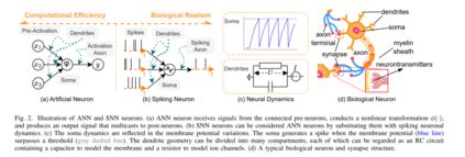 人工智能(AI),特别是机器学习(Machine Learning, ML)的迅猛发展,催生了日益复杂的模型,这些模型在自然语言处理(NLP)[1]、计算机视觉(CV)[2]、个性化推荐系统[3]以及时间序列预测[4]等多个领域取得了最新的先进性能(SOTA)。这些 AI 驱动的应用正在深刻改变人类的日常生活。 传统的 AI 应用高度依赖云端所提供的大量计算与存储资源。由物联网(IoT)设备及其他边缘源生成的海量数据通常被传输至集中式服务器进行处理和管理,用户再通过云端访问数据以获取所需结果 [5]。然而,这种以云为中心的架构面临多项关键挑战,包括吞吐量低、延迟高、带宽瓶颈 [6] 以及日益突出的数据隐私问题 [7]。为缓解这些问题,边缘计算被提出作为一种前景广阔的计算范式,通过将 AI 服务迁移至接近数据源的位置(如 IoT 设备和终端用户)执行,从而降低延迟、减轻带宽压力、并提升系统可靠性与用户体验。 尽管边缘智能具备诸多优势,传统方法依然高度依赖计算资源,对 CPU、GPU、内存及网络带宽提出了严格要求 [8]。这种资源依赖性极大限制了复杂 AI 模型在普遍边缘设备上的部署。尽管智能手机等设备的硬件性能不断增强,但仍难以支撑许多深度学习模型。例如,当前多数语音助手(如 Apple Siri 和 Microsoft Cortana)仍需依赖云端运行,一旦失去网络连接便无法工作 [9]。同时,AI 模型日益增长的计算需求已超过摩尔定律所预测的硬件性能提升速度 [10],预示着传统计算架构将遭遇性能瓶颈。因此,亟需开发新型的、资源高效且具可扩展性的解决方案,以支撑未来的边缘智能发展。 脑启发计算(Brain-Inspired Computing, BIC)[11] 正在成为一种前景广阔的计算新范式,其核心思想是将神经机制与类脑计算策略引入算法与系统设计之中 [12]。其中,脉冲神经网络(Spiking Neural Networks, SNNs)[13] 及其源自神经科学的机制被广泛应用于提升模型的学习能力与能效。当前的算法研究主要通过在常规硬件平台(如 CPU 和 GPU)上的模拟执行来开展,旨在指导下一代类脑硬件的设计与优化 [14]。 类脑系统 [10] 在推动新型计算架构的发展中发挥着关键作用,其通过仿生设计实现了可扩展、高能效与实时性强的计算能力。将 SNN 算法与专用类脑硬件集成后,系统可在边缘实现高能效、低功耗、强鲁棒性的智能应用 [15]。 为推动这一融合边缘计算与脑启发计算的新兴范式的发展,即基于脉冲神经网络的边缘智能(EdgeSNNs),必须首先明确当前 SNN 技术的研究进展,并评估其在边缘场景中的可部署性。现有研究涵盖了从单神经元机制到网络级 SNN 架构及其学习范式的多个层次。与人工神经网络(ANNs)不同,SNN 保持静态网络结构,同时引入神经动态过程,其脉冲生成受生物物理机制调控。为应对动态复杂性带来的计算负担,泄漏积分-发放(Leaky Integrate-and-Fire, LIF)模型[16] 及其变种被广泛采用作为基础神经元模型,以提升计算效率。 当前的 SNN 学习算法可大致分为无监督学习与有监督学习[17]–[19]。后者又进一步细分为ANN 到 SNN 转换(ANN2SNN)方法与直接训练方法。在资源受限的边缘环境下,开发具有生物可解释性的高效学习算法成为关键挑战。我们认为,采用更贴近生物机制的神经元模型具有显著潜力,有望提升类脑计算系统的适应性与能效。然而,要在实际应用中部署 EdgeSNN,还需从多个关键维度进行系统评估,包括任务表现、计算效率与模型可训练性。 基于现有文献,我们将 EdgeSNN 应用中的三类现实需求归纳如下: 1. 边缘设备部署与推理:该方向关注将轻量化的 SNN 模型部署至资源受限的边缘设备,实现低延迟、低功耗的本地推理,并减少对云端资源的依赖。该范式主要解决实时应用中延迟与通信开销问题。核心技术挑战在于,在确保模型准确率的同时,显著降低计算与内存开销。现有方法大致分为:轻量模型设计[20][21] 与后处理模型简化[22]–[24],二者均致力于在性能几乎无损的前提下降低 SNN 的复杂度。 1. EdgeSNN 的训练与更新:该方向强调在设备本地进行学习,利用本地数据训练模型,从而降低将数据上传云端所带来的隐私与安全风险。然而,边缘设备资源受限,加之数据分布的动态变化 [25],使得本地训练面临诸多挑战。为此,提出了两类互补策略:(1)通过优化内存与计算消耗,实现高效的单设备本地训练[26];(2)实现多设备协同学习 [27],或与中心云端协同训练 [28]。在协同学习场景中,通信效率至关重要,更新频率与传输成本显著影响模型性能。 1. EdgeSNN 的安全与隐私保护:该方向旨在防御潜在攻击与隐私泄露。在协同训练中,即使未直接共享原始数据,模型更新中也可能泄露隐私,特别是当更新中包含能反映特定设备或环境的数据模式时 [29]–[31]。此外,由于训练高度依赖本地数据,系统容易遭受对抗样本注入或数据投毒攻击[32],攻击者可通过恶意输入破坏模型训练,造成性能下降或行为偏差 [33]–[35]。