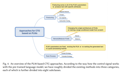 在上述应用和研究背景下,基于PLMs的方法正在成为可控文本生成(CTG)研究的主流,有望带来里程碑式的进展。作为一个迅速增长但充满挑战的研究领域,亟需对当前的文献进行全面的批判性回顾,以绘制该领域的全貌,并为有前途的未来方向提出一条路线图。已经有一些关于CTG的调查[100],但它们缺少(1)CTG的代表性应用任务、主要方法和评估方法的系统性回顾;(2)对最新的大规模基于PLM的CTG方法的追踪。在本文中,我们提供了一个关于与CTG相关的主要任务和评估指标的介绍,对使用PLMs的CTG方法进行了详细而全面的文献回顾,最后,对可能的未来研究方向提出了展望。我们希望这篇调查论文将帮助研究人员和从业人员快速捕捉到基于PLM的CTG的整体画面以及详细的前沿方法,并促进这一有前途的领域的进一步发展。