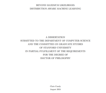 传统的机器学习方法通常依赖于最大似然估计(MLE),因为其实现简单且等价于最小化KL散度。然而,仅通过最大化似然进行训练的模型往往缺乏在实际应用中所期望的某些特性,如不确定性的量化、对分布外输入的鲁棒性,或遵守隐私约束。随着机器学习模型被越来越广泛地部署,这些重要特性变得比以往任何时候都更加必要。不幸的是,能够提供这些特性的方法在当今的大模型和大数据集下通常难以实现。