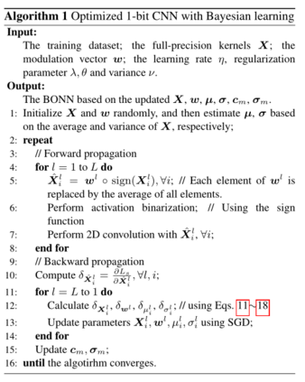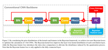 摘要: 深度卷积神经网络(Deep convolutional neural networks, DCNNs)通过制作各种破纪录的模型,主导了计算机视觉领域的最新发展。然而,在资源有限的环境下,如嵌入式设备和智能手机上,实现强大的DCNNs仍然是一个巨大的挑战。研究人员已经认识到,1位CNNs是解决这一问题的一个可行方案;然而,与全精度DCNNs相比,它们的性能较差。在本文中,我们提出了一种新的方法,称为贝叶斯优化1位CNNs(简称BONNs),利用贝叶斯学习这一成熟的解决困难问题的策略来显著提高极端1位CNNs的性能。我们在贝叶斯框架中加入了全精度内核的先验分布和特征,以端到端的方式构造了1位CNNs,这在以前的相关方法中都没有考虑到。在理论支持下,实现了连续和离散空间同时优化网络的贝叶斯损失,将不同的损失联合起来,提高了模型的容量。在ImageNet和CIFAR数据集上的大量实验表明,与最先进的1位CNNs相比,BONNs具有最佳的分类性能。