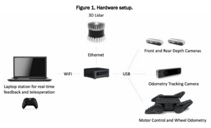 利用无人地面飞行器(UGV)进行自主导航和未知环境探索极具挑战性。本报告研究了一种利用小尺寸、低重量、低功耗和低成本有效载荷的测绘和探索解决方案。本文介绍的平台利用同步定位和绘图功能,通过寻找可导航路线来有效探索未知区域。该解决方案利用多种传感器有效载荷,包括轮子编码器、三维激光雷达、红-绿-蓝相机和深度相机。这项工作的主要目标是利用 UGV 的路径规划和导航功能进行测绘和探索,从而生成精确的 3D 地图。所提供的解决方案还利用了机器人操作系统。