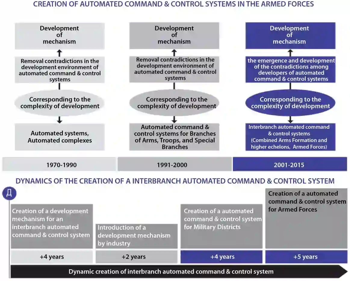 这些推进俄罗斯常规军事能力的发展与俄罗斯追求以网络为中心的现代和未来战争的方法密切相关,采用指挥、控制、通信、计算机、情报、监视和侦察(C4ISR),扎根于利用高科技来实现这些目标。在军事决策领域,发生了一场革命,与它所取代的C2机器相比,已经到位的新系统几乎无法被识别。