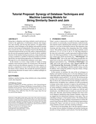 报告主题:Synergy of Database Techniques and Machine Learning Models for String Similarity Search and Join
