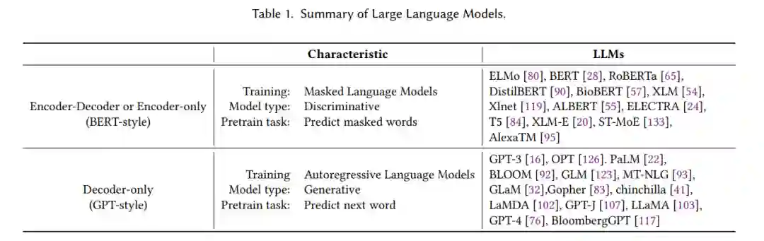 我们还简要总结了表1中每种类型的特征和代表性LLM。