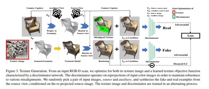 真实的颜色纹理生成是RGB-D表面重建的一个重要步骤,但由于重建几何形状的不准确性、相机姿态的不正确以及与视图相关的成像伪影,在实践中仍然具有挑战性。在这项工作中,我们提出了一种利用从弱监督视图中获得的条件对抗损失来生成颜色纹理的新方法。具体地说,我们提出了一种方法,通过学习一个目标函数来生成近似表面的真实感纹理,即使是在未对齐的图像中。我们的方法的关键思想是学习一个基于补丁的条件鉴别器,它可以引导纹理优化对不匹配的容忍度。我们的鉴别器采用一个合成的视图和一个真实的图像,并在一个广义的真实感定义下评估合成的图像是否真实。我们通过提供输入视图的“真实”示例对及其未对齐的版本来训练鉴别器,这样学习到的竞争损失将能够容忍扫描的错误。在定量或定性评价下对合成和真实数据进行的实验表明,我们的方法与现有方法相比具有优势。我们的代码是公开的视频演示。