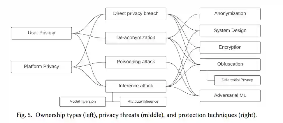 随着人们对收集和分析个人数据的机器学习方法的日益关注,数据隐私的道德需求已在强制性法规和法律中得到正式承认[22,281]。因此,近年来保护隐私的机器学习的研究得到了长足的发展[185]。人们相信,一个更值得信赖的网络服务应该提供保护隐私的解决方案,以避免系统的任何参与者不希望的信息暴露。在推荐系统和一般的机器学习领域中,都存在多种隐私定义[5,148,255,257],在大多数情况下,它们具有相同的成分:
