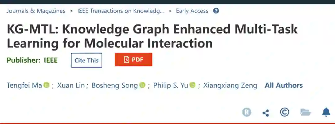 参考资料 Ma, T., Lin, X., Song, B., Philip, S.Y. and Zeng, X., 2022. KG-MTL: Knowledge Graph Enhanced Multi-Task Learning for Molecular Interaction. IEEE Transactions on Knowledge and Data Engineering.
