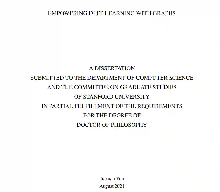 深度学习重塑了人工智能的研究和应用。现代深度学习模型主要是为规则结构的数据设计的,如序列和图像。这些模型是为将这些规则结构的数据作为输入(例如分类、回归)、作为输出(例如生成)或作为结构先验(例如神经架构设计)的任务而建立的。然而,并非所有形式的数据都是规则结构的。一个值得注意的例子是图结构数据,这是一种通用而强大的数据结构,它以简洁的形式表示实体及其关系。虽然图结构数据在自然和社会科学中无处不在,但它是离散的和非i.i.d的。大自然给现代深度学习模型带来了独特的挑战。本文旨在通过促进深度学习模型将图作为输入、输出和先验,以图结构数据为深度学习赋能。我在这三个方向的研究为深度学习的研究开辟了新的前沿:(1)基于深度学习的图学习。开发了具有表现力的有效深度学习方法,可以将图作为输入,促进了图的学习和理解。(2)基于深度学习的图生成。用深度学习模型规范了图的生成过程,促进了图的发现和设计。(3)图作为深度学习的先验。发现图结构可以作为神经架构和机器学习任务的强大先验,为深度学习的设计和理解打开了一个新的方向。讨论了上述技术的广泛应用,包括推荐系统、药物发现、神经架构设计和缺失数据填补。