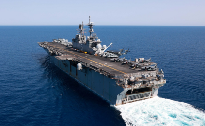 图:2023年8月8日,美国海军巴丹号两栖攻击舰(LHD 5)通过红海。(美国海军三等大众传播专家莱利-加斯迪亚拍摄)。