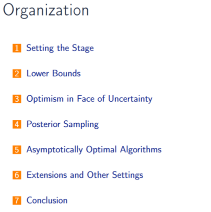 摘要: 强化学习(RL)研究的是当环境(即动力和反馈)最初未知,但可以通过直接交互学习时的顺序决策问题。学习问题的一个关键步骤是恰当地平衡对环境的探索,以便收集有用的信息,并利用所学的政策来收集尽可能多的回报。最近的理论结果证明,基于乐观主义或后验抽样的方法(如UCRL、PSRL等)成功地解决了勘探开发难题,并且可能需要比简单(但非常流行)的技术(如epsilon贪心)小指数的样本来收敛到接近最优的策略。乐观主义和后验抽样原则直接受到多臂bandit文献的启发,RL提出了具体的挑战(例如,“局部”不确定性如何通过Markov动力学传播),这需要更复杂的理论分析。本教程的重点是提供勘探开发困境的正式定义,讨论其挑战,并回顾不同优化标准(特别是有限时间和平均回报问题)的主要算法原则及其理论保证。在整个教程中,我们将讨论开放的问题和未来可能的研究方向。