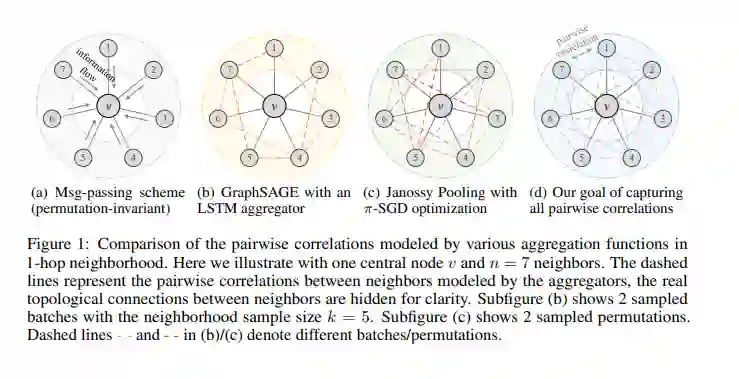 邻接矩阵排列的不变性,即图同构,是图神经网络(GNNs)的首要要求。通常,聚合消息时,节点排列上的不变操作可以满足这个前提条件。但是,这种不变性可能会忽略相邻节点之间的关系,从而影响GNN的表达能力。在这项工作中,我们通过排列组设计了一种高效的排列敏感聚合机制,捕获相邻节点之间的成对关联。我们证明了我们的方法严格地比二维Weisfeiler-Lehman (2-WL)图同构检验更强大,且不低于3-WL检验。此外,我们证明了我们的方法实现了线性抽样复杂度。在多个合成数据集和真实数据集上的综合实验证明了我们的模型的优越性。
