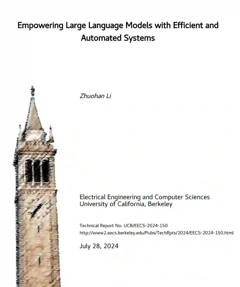 https://www2.eecs.berkeley.edu/Pubs/TechRpts/2024/EECS-2024-150.html 大型语言模型(LLMs)为计算行业带来了显著的进步。诸如ChatGPT [101] 这样的对话聊天机器人和GitHub Copilot [46] 这样的编程助手已经深深融入人们的日常生活。然而,由于模型规模庞大和计算需求巨大,LLMs与大多数研究人员和从业者之间仍存在很高的障碍。LLMs通常是具有数千亿参数的大型神经网络。例如,GPT-3模型[18] 具有1750亿个参数,如果以半浮点精度存储,则需要超过350 GB的内存。而目前市场上最先进的GPU仍然只有40-80 GB的内存,这显著低于LLMs所需的内存。为了高效地执行这些LLMs,分布式执行这些模型成为必要,有时甚至需要扩展到数千个GPU的规模。然而,分布式执行需要对模型的执行进行仔细的分区和调度,这种额外的复杂性大大提高了在现实世界中部署这些模型的门槛。 在本论文中,我们设计了算法并构建了系统,以提高计算效率并减少训练和部署LLMs时的工程开销。在接下来的章节中,我们将分别介绍本论文在LLM训练和LLM推理方面的贡献。最后,我们将讨论本论文中介绍的系统对现实世界的影响。