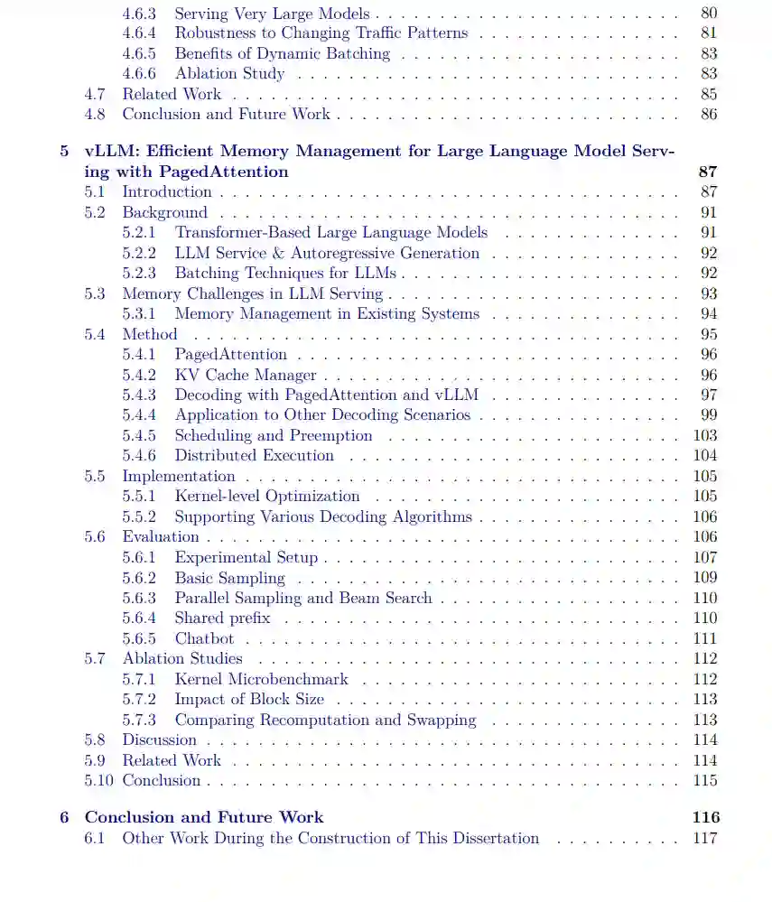 这些项目的广泛用户社区不仅验证了这些想法,还为一线研究挑战开辟了令人兴奋且持续的研究路径,呈现了未来探索的众多机会。在第6章中,我们总结了本论文的贡献,并讨论了未来的研究方向,以实现一个全球人人都能使用最先进的LLM的未来。