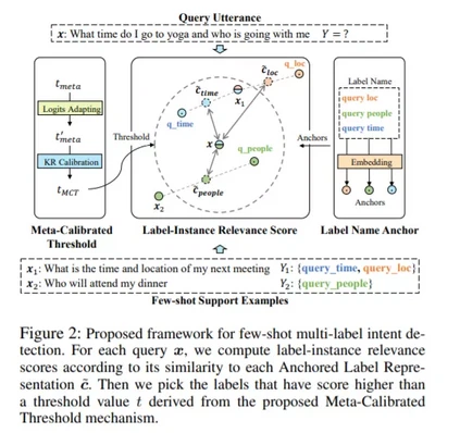 简介:小样本学习(Few-shot Learning)近年来吸引了大量的关注,但是针对多标签问题(Multi-label)的研究还相对较少。在本文中,我们以用户意图检测任务为切入口,研究了的小样本多标签分类问题。对于多标签分类的SOTA方法往往会先估计标签-样本相关性得分,然后使用阈值来选择多个关联的标签。 为了在只有几个样本的Few-shot场景下确定合适的阈值,我们首先在数据丰富的多个领域上学习通用阈值设置经验,然后采用一种基于非参数学习的校准(Calibration)将阈值适配到Few-shot的领域上。 为了更好地计算标签-样本相关性得分,我们将标签名称嵌入作为表示(Embedding)空间中的锚点,以优化不同类别的表示,使它们在表示空间中更好的彼此分离。 在两个数据集上进行的实验表明,所提出的模型在1-shot和5-shot实验均明显优于最强的基线模型(baseline)。