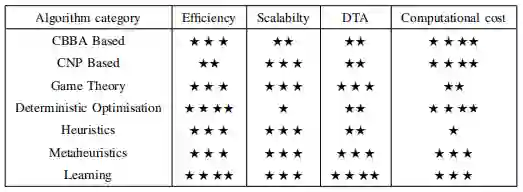最近发现的方法包括PI(性能影响)算法的改进,如PI-MaxAss[14]和[35]。此外,其他技术是CBBA算法的改进,如修改的CCBBA[38],G-CBBA[40]和[41]。