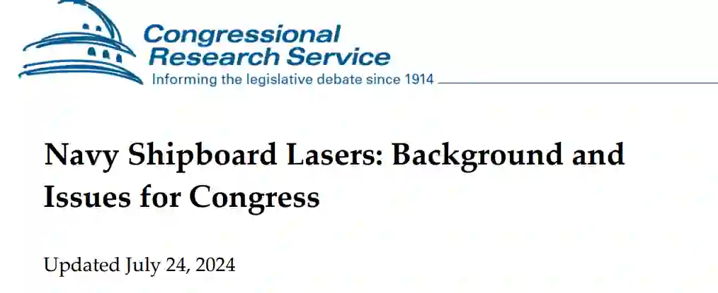 本报告向国会提供了海军正在开发的用于水面舰艇自卫的舰载固体激光器(SSL)的背景信息和问题。海军 2025 财年拟议预算要求继续为其中一些工作提供研发资金。