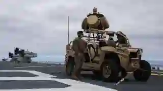 图:美海军陆战队员在 USS Makin Island (LHD-8) 上操作轻型陆战队防空综合系统--一种短程地对空系统,可用于威慑和制服无人机系统。为了应对国内的无人机威胁,海军需要一个专门的岸上反无人机系统团体和更好的系统来探测、定位和摧毁敌方的无人机系统。美国海军陆战队(凯文-G-里瓦斯)