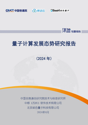 2024年9月25日,在2024中国国际信息通信展览会(PT展)上,中国信息通信研究院(简称“中国信通院”)、中移(苏州)软件技术有限公司和北京玻色量子科技有限公司联合发布《量子计算发展态势研究报告(2024年)》。中国信通院技术与标准研究所王敬对报告进行了解读。