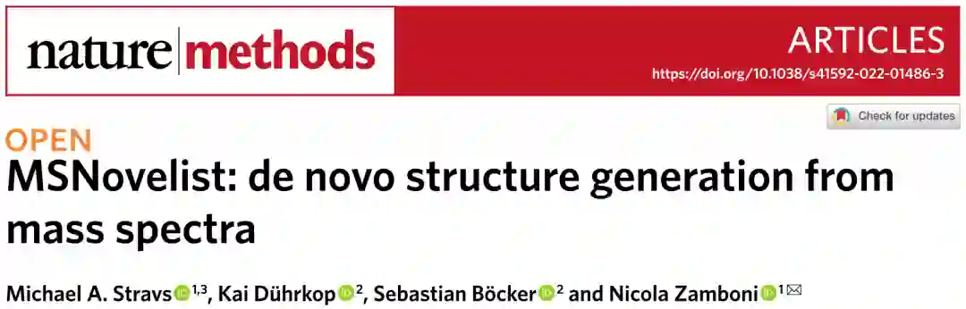 Stravs, M.A., Dührkop, K., Böcker, S. et al. MSNovelist: de novo structure generation from mass spectra. Nat Methods (2022). https://doi.org/10.1038/s41592-022-01486-3