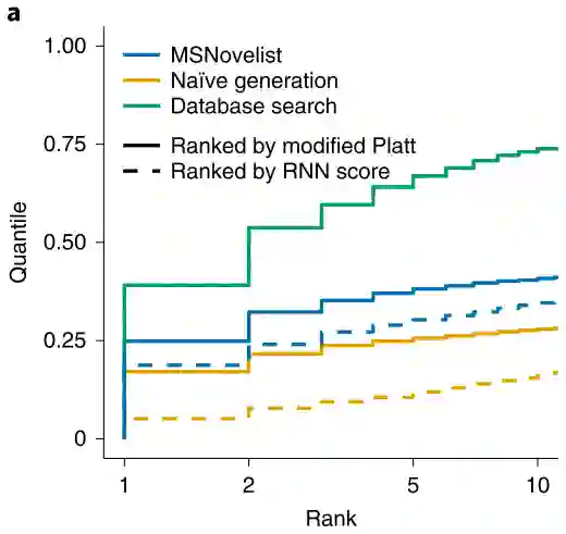 从对比结果可以看出,MSNovelist模型取得了比数据库搜索算法CSI:FingerID更好的预测性能。