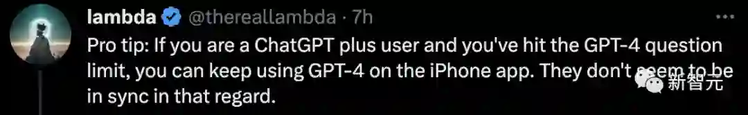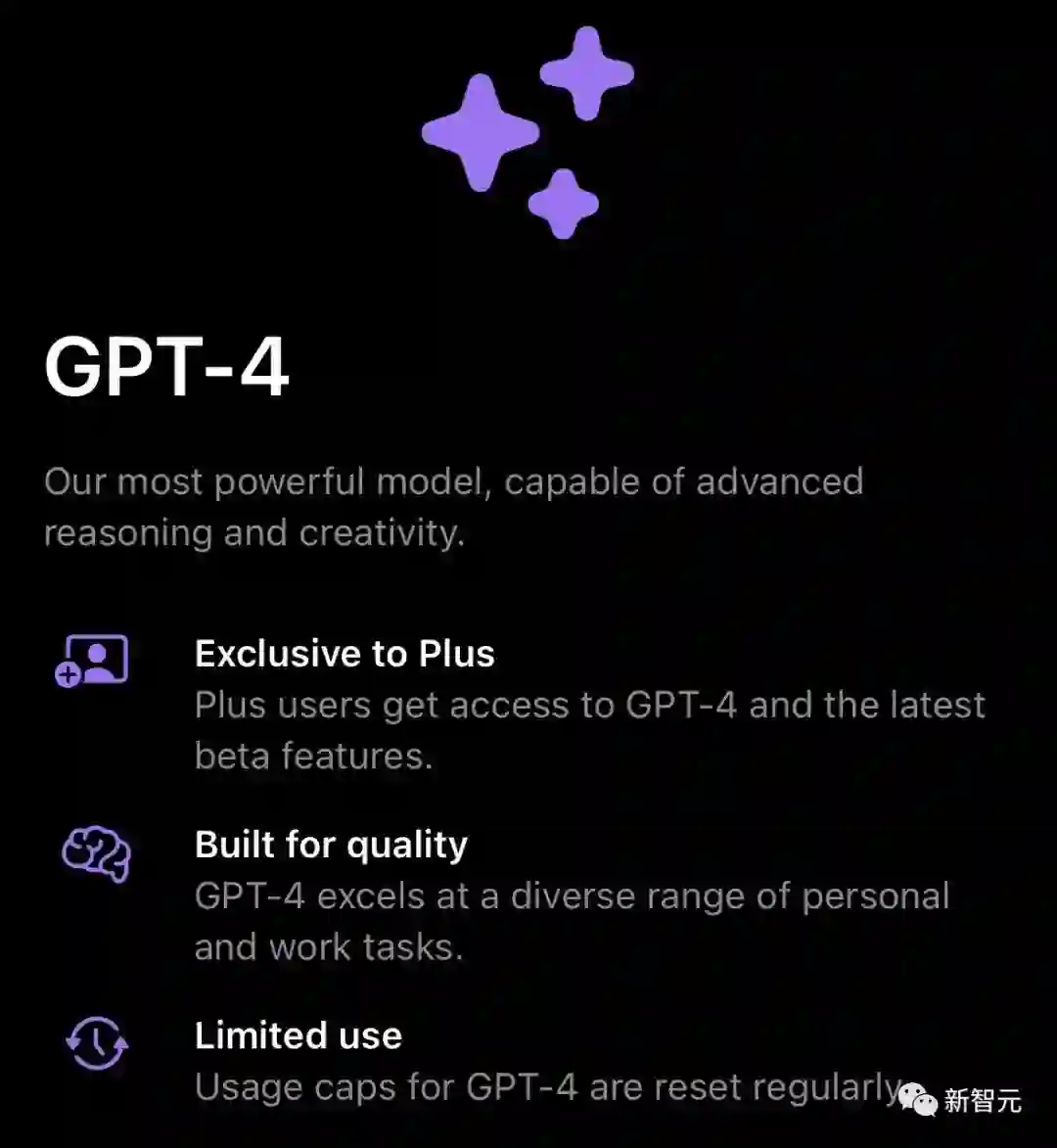 看到这个界面,不少网友惊呼——看来iOS版GPT-4的使用限制取消了!然而,根据官方介绍推断,限制应该还是有的。