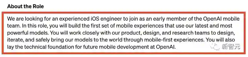 从岗位明细中,我们可以看到,OpenAI想找一名有经验的iOS软件工程师,成为OpenAI移动端团队的早期成员。「我们需要iOS方向的人才,来帮我们搭建第一代移动端APP,搭载我们最新的、性能最强的模型。你会近距离接触我们的产品、设计,以及研发团队,来把我们在互联网上的模型放到移动端上。不仅如此,你还能为OpenAI移动端未来的发展打下技术基础。」