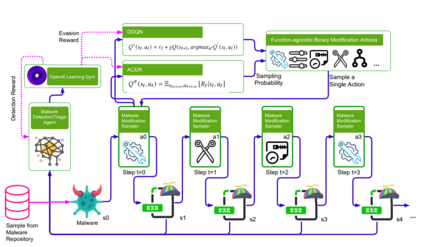 为了打击日益多变和易变的现代恶意软件,机器学习(ML)现在是对现有基于签名的恶意软件分流和识别技术的一种流行和有效的补充。然而,ML也是对手的一个现成的工具。最近的研究表明,恶意软件可以通过深度强化学习(RL)技术进行修改,以绕过基于人工智能和基于签名的反病毒系统,而不改变其原有的恶意功能。这些研究只专注于生成规避样本,并假设静态检测系统为敌人。