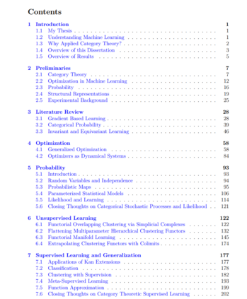 本文的目的是表明,研究机器学习系统中潜在的组成和函数结构使我们能够更好地理解它们。本文探索了机器学习许多子领域的范畴理论表述,包括优化、概率、无监督学习和有监督学习。本文首先研究了当用一般的范畴理论结构取代梯度时,各种优化算法的行为。证明了这些算法的关键性质在非常宽松的假设下是成立的,并通过数值实验证明了这一结果。本文还探索了动态系统的范畴论视角,使我们能够从简单操作的组成中构建强大的优化器。其次,从范畴理论的角度研究了概率建模与梯度优化之间的关系;本文从这个角度来研究最大似然估计如何在从统计模型到监督学习算法的转换中保持某些关键结构。