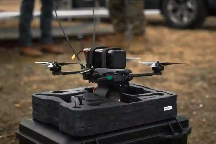 图:2025年3月7日,弗吉尼亚州匡提科基地武器训练营靶场演示中,一架Neros Archer FPV无人机静置于箱体上。(图片来源:美国国防部