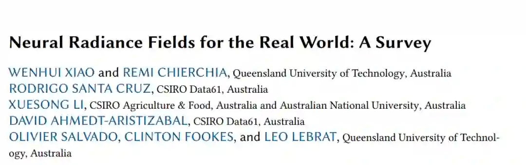 1)什么构成了NeRF的良好量化不确定性?2)我们能否高效地量化认知和随机不确定性?对于泛化能力,尽管在未见场景的渲染方面取得了令人印象深刻的成果,但在长时间训练和未观察区域细节不足方面仍然存在挑战。3D视觉领域见证了NeRF的广泛采用,改变了各种数据类型(如医学成像)的3D表面重建。现实世界的应用需要处理多样化的信号,最近的研究展示了使用多模态输入(如语义标签、事件流、多光谱数据和音频)来通知和增强3D场景学习的潜力。尽管处于早期阶段,这一研究方向呈现了一个有前途但尚未充分探索的领域:如何高效地利用来自多样化信号的先验知识进行3D场景学习。一个令人兴奋的挑战在于开发直接从其他信号(如机器人中的SLAM算法生成的姿态估计数据)训练和推断NeRF模型的系统。除了重建任务外,NeRF越来越多地影响传统的计算机视觉任务,如3D语义分割。学习3D场景自然支持自监督学习。看到NeRF如何无缝集成并改进各种大规模3D下游任务是令人兴奋的。此外,大型模型的进展可能进一步提升NeRF的性能,可能绕过传统的相机姿态估计和重建步骤。这可能导致直接相机姿态估计和NeRF学习,使用如Transformer等大型模型。NeRF还重塑了AIGC,尽管现有的基于NeRF的3D生成技术仅限于梦幻风格的物体生成,通常缺乏精细的现实细节,并且需要长时间优化。开发高保真度、实时、忠实和可控的3D生成技术将有益于AR/VR和创意产业。相反,生成模型可以用于改进重建。有一种趋势是利用从大规模图像资产中学到的生成先验来丰富未观察区域的细节并促进场景学习。然而,考虑这些生成方法的伦理和版权影响至关重要。