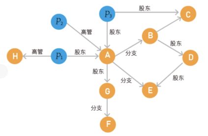 如图 4 所示,指定的个人节点** P1 **与企业节点 D 之间是否存在路径?需要找到源节点与目标节点之间的直接或间接路径,即任意两个节点之间的关联路径问题。