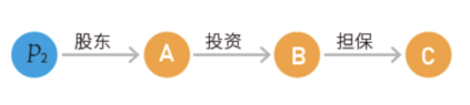两个实体之间经过多个中间节点形成的关联路径,可以表示为它们之间的间接关联关系。对于实现业务目标来说:关联路径查询能够发现企业知识图谱中任意两个实体之间存在的路径,可以衡量企业之间联系的密切程度,发现可能存在的风险问题。以图 4 为例,查询 P2 和 C 之间的关联路径,其查询结果如图 5 所示,可以看出** P2** 和 **C **之间存在的联系。关联路径查询的算法如下所示。
