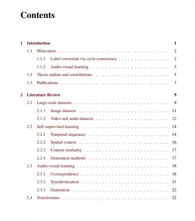 深度学习推动了应用的爆炸式增长,然而训练深度神经网络通常需要昂贵的人工注释。在这篇论文中,我们探索了在训练深度神经网络时避免大量依赖人工注释示例的替代方案。具体来说,要么采用自监督方法来自动纠正自由获得的数据标签,要么完全放弃使用人工标签,而是利用音频和视觉信息的自然共生来学习视频中的对象表示。越来越多的数字数据通常会提供噪声标签,这些标签可以用来监督学习过程。传统的数据预处理包括在训练识别模型之前纠正/清理数据,但这可能需要大量的人工工作。我们考虑自动更正注释噪声,从而避免了昂贵的手动注释的需要。我们构建和扩展了最近的突破,使用一致性损失(consistency loss)和空间记忆映射(space memory map)来提供灵活的实例级注册,从而实现更大的泛化。进一步探索了多模态感觉流,利用模态冗余,即模态之间的重叠信息,为模型提供自监督。表示是通过利用不同的模式来学习的,而不使用任何人类注释的标签。我们将使用三个不同的应用程序演示此技术。