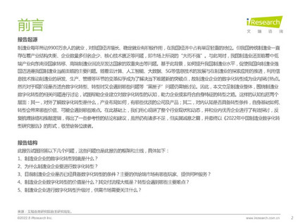 制造业数字化转型所具备的条件: 政策端:政策方向以补短板、育龙头、促新技术与制造业融合创新为主调,引导制造业向服务型制造业转型。 技术端:AI、5G等相关技术的基础建设逐步推进,并且逐步在工业场景中推行应用。 资本端:资本市场整体下行的情况下,软件相关企业获投次数与金额逆势上涨,其中以MES、AI检测等为主。 供需端:对于供给端而言,软硬件产品已经逐步覆盖生产制造全场景。大部分行业头部厂商逐步向平台型厂商演变,其服务更加综合,覆盖的服务范围更加宽泛。对于需求端而言,大部分制造业企业目前在供应链、生产管理、数据分析等模块上或多或少均已经有较为成功的软件应用实践,即现阶段企业在数字化转型工具方面并非完全的小白,已经具备了一定的数字化转型认知,具备一定的转型基础。 制造业数字化转型的价值与难点: 转型价值:在降低研发试错成本、实现批量个性化生产、促成并满足买方市场、提升企业生产能力等方面价值明显。 转型难点:整体来看,难点可概括为自知难、推进难、落实难三点。针对自知难:1)在庞杂生产参与要素(设备、原材料、人员等)中梳理并明确自身需求难、定位清楚自己的数字化水平难;2)企业如何从诸多同质化的供应商中找到适合的合作对象难。针对推进难:1)制造业企业服务链条长,转型不是一个人或一个部门的事,破除部门墙难;2)转型具有金额高、周期长的特点,供需双方之间就需求变、急求成、急见效等问题会存在诸多拉锯,顺利推进难。针对落实难:1)制造业企业生产相关数据采集、应用难;2)培养并顺利过渡到数字化的工作方式难。 制造业数字化转型的建议与启示: 转型建议:在转型的各个环节、各个参与要素上需自省、外查并行,戒骄戒躁。 供给端:1)对于主打集成商的大厂而言,要针对自身企业基因寻求合适的发展路径,初步来看,对于没有制造业经验的玩家,通用服务>垂直深耕服务用以开源,市场选择先行用以准确切入行业。对于有制造业经验的玩家,则收购/合作代替“从零出发”、占领自己所在行业、持续提升技术投入等是重点。但是,不管哪类企业,都需要重视政府关系。2)对于垂直类玩家而言,经过前期的客户积累、口碑建设后,往往通过生态合作伙伴的建立走向平台化服务,最终可能演变为集成商。 需求端:数字化转型具有持续性,需要企业时刻关注市场变化保证企业数字化方面的先进性。同时,企业要找到适合自己的切入路径,忌盲目追求大而全。目前市场上最常见的路径就是协调式或探索式转型。
